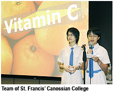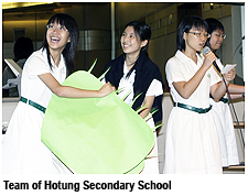 The teams reported on their projects and shared their accomplishments in front of four adjudicators and other teams. The adjudicators included Mr Wong Chung-po, Senior Curriculum Development Officer of the Education and Manpower Bureau; Professor Lilian Vrijmoed of the Department of Biology and Chemistry, who is also Dean of Student Learning; Professor Henry Chung of the Department of Electronic Engineering; and Dr Alan Chan, Associate Professor of the Department of Manufacturing Engineering and Engineering Management.The best presentation award went to the team from