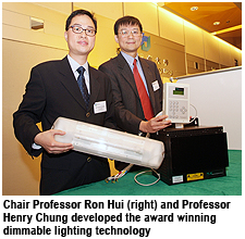 The dimmable lighting technology, jointly developed by Chair Professor Ron Hui and Professor Henry Chung, both from CityU's Department of Electronic Engineering, is energy saving and environmentally friendly.