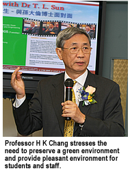 But Professor H K Chang, University President, said that the University would strike a balance between the need for growth and the need to preserve a green environment. The University aimed to provide pleasant environment for students to study and staff to work, he said.