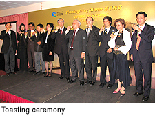 A toast was then proposed by Sir Gordon, Professor Chang, Dr Dennis Sun, and CRC Council members and secretaries. They included: Ms Stella Lau, Dr Leung Wing-tai, Ms Lo Kai-yin, Mr Michael Ying, Professor David Tong, Professor Wong Yuk-shan, Professor Richard Ho, Mr John Dockerill, Ms Kathy Chan and Mr Victor Fung.