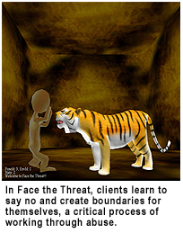 SAT activities such as "Paint Splash" invite the client to throw paint (conceptually) against a screen, giving the therapists an understanding of the client's feelings. In "Face the Threat," clients are encouraged to overcome fear and anger by controlling 3-D images of animals that pose a "threat" and thereby create boundaries, a critical process of working through the experience of their abuse.