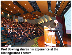 As part of CityU’s Distinguished Lecture Series Professor Dowling was speaking on 17 February at Wei Hing Theatre, where he was invited by Professor David Tong, CityU’s Deputy President, to share his experience with over 300 members of the CityU community, UGC representatives, industry leaders and other guests.