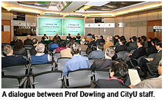 By meeting Professor Dowling, academic and administrative staff at CityU gained insight into areas such as the recruitment of quality faculty, measurement of performance in applied research, and strategies to promote a university.