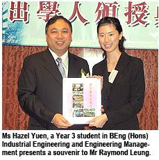 "I would like to thank Mr Leung for giving me the opportunity to gain valuable work experience during my studies. I will cherish this opportunity to learn more about work and communications skills and seize this chance to go beyond the textbook," Hazel said.