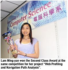 The project “Web Profiling and Navigation Path Analysis” by Lam Ming-yan won the Second Class Award at the same competition. “The aim of my project is to make the web browsing experience more personal,” Ming-yan said.