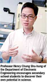 “We hope to spread the spirit of scientific research to secondary schools and encourage students to think more and try more, discover their own potential, make the most of their boundless creativity, and apply what they have learnt to their daily lives,” said Professor Henry Chung Shu-hung of the Department of Electronic Engineering, the coordinator of the event.