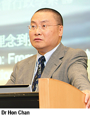 Three mainland environmental experts presented their perspectives on these issues. Professor Ma Xiaoling of the South China Institute of Environmental Sciences, State Environmental Protection Administration, looked at strengthening Guangdong - Hong Kong cross-border environmental governance in order to realize common objectives of clean air and blue skies in the Pearl River Delta region; Mr Xue Renjie, Deputy Director of the Jiangsu Environmental Protection Bureau, reviewed past emission trading schemes on the mainland; and Dr Zhu Fahua, Deputy President of the State Power Environmental Protection Research Institute, analyzed the prospects and challenges of a nation-wide emission trading programme from a corporate perspective.