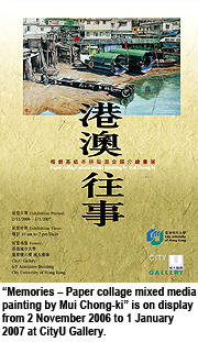 The exhibition will be on display from 2 November 2006 to 1 January 2007 at CityU Gallery on Level 6 of the Amenities Building at CityU. Opening hours are from 10 am to 7 pm every day.