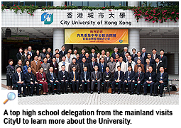 While exchange visits from mainland educational institutions are frequent, this is the first time a delegation of this size has visited CityU, according to Professor H K Chang, University President. Altogether, 38 top mainland high school principals, administrators and teachers were welcomed onto campus.