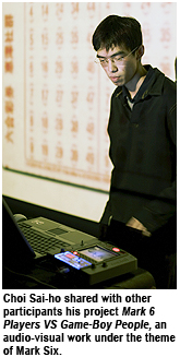 The Red Bull Music Academy offers an international platform for participants with different backgrounds and cultures to share their ideas and thoughts about composing different types of music. Choi Sai-ho has shared with other participants his final-year undergraduate project Mark 6 Players VS Game-Boy People, an audio-visual work under the theme of Mark Six.