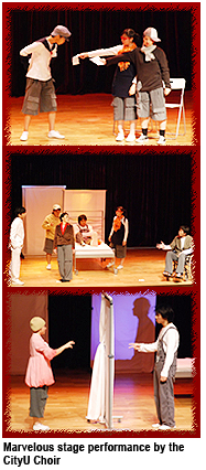 After the performance, the choristers offered their own views. Wong Ging, studying Managerial Statistics, played the role of the young hero Zi Wu. “This has been an invaluable opportunity. Our rehearsals spanned over half a year. I was so touched by the way the audiences responded. It was better than we expected and gave us added motivation,” Ging said.