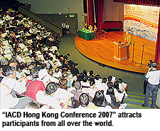 under the theme "Partnership for People-centred Development: Challenges & Responses in a Globalising World" held its opening ceremony at City University of Hong Kong (CityU) on 25 June. At the four-day conference, from 24 June to 27 June, scholars and community workers from all over the world presented work plans and research achievements, and proposed new concepts and suggested new policies. The conference was co-organized by the Department of Applied Social Studies of CityU, the Department of Social Work and Social Administration of the University of Hong Kong (HKU) and the Hong Kong Council of Social Service. Sponsored by the Home Affairs Bureau of the HKSAR Government, it was one of the key events of the 10th anniversary celebrations of HKSAR. The IACD Conference is a well-recognized international forum for the promotion of community development practices, research and policy analysis. Since 1999, it has been organized biennially in the UK, New Zealand, the US and Cameroon. The Hong Kong conference aimed to provide an international platform for community workers, academics and researchers, policy makers and administrators, and individuals and organizations that support and promote the concept of community development. Through the conference, participants could exchange their experience, establish personal and organizational networks, share views and beliefs on community development, and join hands to promote their concepts and practices of community development in Asia and other regions.