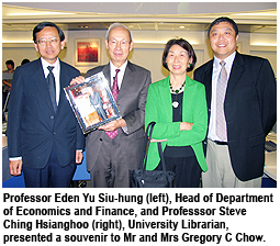 Professor Chow is appointed Honorary Professor in the Department of Economics and Finance at City University of Hong Kong. The Department has set up Professor Gregory Chow Distinguished Graduate Student Fellowships to finance students doing master's degree in Applied Economics.