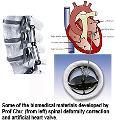 Since joining CityU in 1996, Professor Chu has been committed to researching the basic theories of plasma and plasma implantation and the applications to semiconductors and biomedical materials. He has developed a range of advanced technologies, including plasma-based orthopedic NiTi shape memory alloys for correcting spinal deformities. The application is currently undergoing clinical trials in the Faculty of Medicine at the University of Hong Kong.