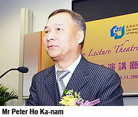 CityU names a lecture theatre after alumnus Peter Ho Ka-nam