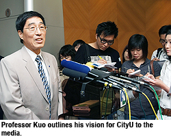 As the president, Professor Kuo sees himself as the catalyst to moving things along rapidly to enable the University to grow and excel in meeting the demands and challenges of a rapidly changing higher education scene, both locally and internationally. Among the pressing issues will be internationalising the campus and broadening students' horizons. The University will increase the intake of non-local students. In addition to student feedback, teachers will also be evaluated by other means to enhance teaching quality.