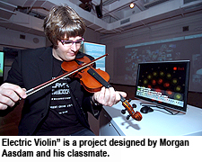 "Electric Violin" is a project designed by Morgan Aasdam and his classmate, both Year 2 students of the School. Morgan said this musical tool was used as a human-computer interface and acted like a toy for people to practice their violin skills and introduce people to the instrument with ease.