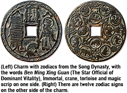 Chinese numismatic charms, or talismanic charms as they are also known, are objects shaped like classical coins but without currency value. They are predominantly cast in bronze, with auspicious inscriptions, symbols and images of gods and legendary figures. They served to invite good fortune and ward off evil spirits. These coins were produced in large quantities during the Han Dynasty, and all through the Song, Yuan, Ming and Qing Dynasties. They carried a wealth of cultural content that extended into religion (such as Buddhism, Daoism and Confucianism), fine arts (such as calligraphy, painting and sculpture) and folk practices (such as the worshipping of the stars).