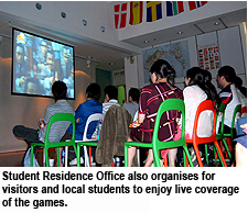 Providing accommodation to 150 overseas volunteers, CityU’s Student Residence Office also organised for visitors and local students to enjoy live coverage of the games in a cheerful atmosphere.