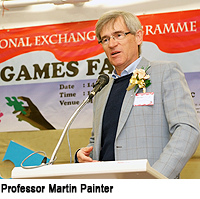 Activities at the fair were focused on a mixture of games from across the world. By introducing children’s games and toys peculiar to various places, the College aimed to strengthen ties among the exchange students and also to raise both local and exchange students’ awareness of multiculturalism. All kinds of booths were set up in three activity regions for games demanding physical skills, intellectual skills, and both types of skills, respectively. At the fair, both local and overseas students enjoyed themselves playing together such traditional games as hopscotch, chess, Chinese chess, Chinese yoyo, tangram, shuttlecock and Jenga. A six-metre-long hopscotch playing field became one of the main attractions during the day.Professor Martin Painter, Acting Dean of the College of Humanities and Social