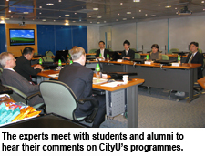 In the subsequent sessions, the panel members were shown CB’s teaching facilities, including the various laboratories. They also met with some CB students and alumni to learn why they had chosen to enrol in CB’s programmes, what they would expect, and what improvements they would suggest . The students and alumni praised CityU’s programmes for their international nature and the atmosphere conducive to interactive discussion and self-development.