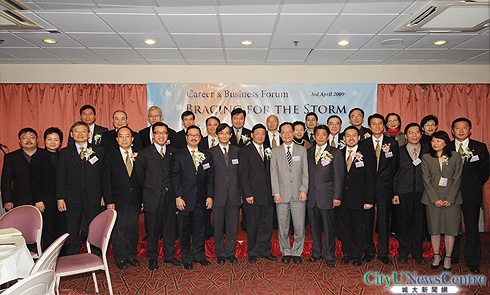 The Career and Internship Office of City University of Hong Kong (CityU) and Lions Club of Metropolitan Hong Kong staged a career and business dinner forum titled “Bracing for the Storm” on 3 April. Dr Stephen Chow Chun-kay, founder and Honorary Advisor of the club, and 15 club members offered career advice to more than 100 students at the dinner. They also offered insight on the latest job market information and talked about some keys to career success. Mr Herman Hu Shao-ming, member of the University Council and Chairman of Ryoden Development, Professor Richard Ho Yan-ki, Provost of CityU, and Professor Paul Lam Kwan-sing, Vice President (Student Affairs), were also invited to join the dinner forum.