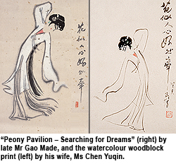 Ms Chen studied western painting and graduated from the Department of Western Painting at Hangzhou National College of Art (now China Academy of Art). After marriage, she often worked with her husband and watched Kunqu opera together. Ms Chen’s enthusiasm for watercolour woodblock prints and Chinese ink painting saw her depict the opera characters drawn by Mr Gao, as well as flowers and subjects drawn from daily life, in her works.