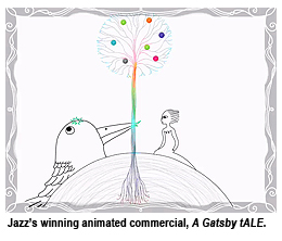 Jazz’s creative work, titled A Gatsby tALE, vividly presented the Japanese hair product by showing a girl’s long hair merge into a tree through the clever use of graphics. Although the commercial only lasts for 30 seconds, Jazz drew more than 700 sketches for it.