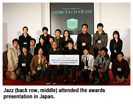 More than 250 entries from students in Japan, South Korea and Hong Kong were submitted to the competition. After the first screening and online voting, the works of 20 candidates were selected for the final round. Jazz was given the opportunity to go to Japan to gain animation and commercial experience with local advertising veterans.