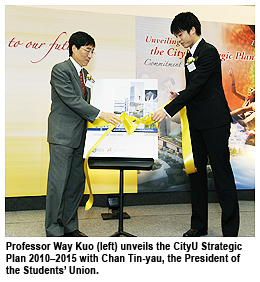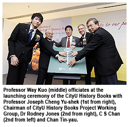 A ceremony held at City University of Hong Kong (CityU) on 14 January marked the launch of the CityU history books and unveiling of the CityU Strategic Plan 2010-2015. It signifies that CityU, after celebrating its 25th anniversary, has entered a new stage of development by positioning itself as a university renowned for its excellence in research and innovative professional education programmes.