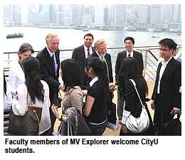 More than 20 City University of Hong Kong’s (CityU) faculty, staff and students took a tour on the visiting floating university, MV Explorer, to gain a first-hand experience of on-board education, on 23 February.