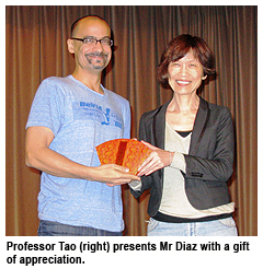 At the conclusion of the conversation with Mr Diaz, Professor Julia Tao Lai Po-wah, Chief-of-Staff of CityU, presented the special guest with a gift of appreciation. Mr Diaz then stayed on for a book signing session and reception.
