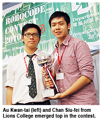 The students were taking part in the final of the CityU-CS Robocode Contest 2010 at CityU on 20 November, which attracted around 500 participants from 65 local schools. The final was screened in a laboratory in the department.