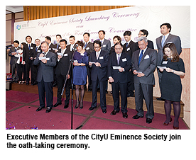 The Society is supported by CityU’s senior management. Dr Norman Leung Nai-pang, Pro-Chancellor, The Hon Leung Chun-ying, Council Chairman, and Professor Way Kuo, President, serve as Honorary Patrons. All three officiated at the launching ceremony alongside Mr Peter Ho Ka-nam, Chairman of CityU Eminence Society.