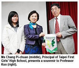 He gave a talk entitled “How should students face the trend of internationalisation of education” to graduating students at two of the most renowned secondary schools in Taiwan—Taipei First Girls’ High School and Taipei Municipal Jianguo High School.