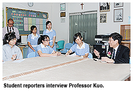 After the talk, Professor Kuo visited the college’s Natural Science and Environmental Protection Trail, including the Orchid Room, Vegetable Garden and Solar-power Experiment Zone. He also exchanged views with student reporters.