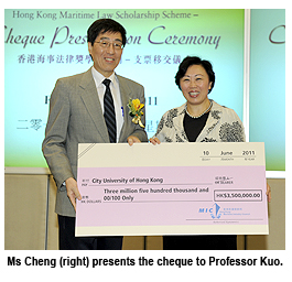 Professor Kuo said: “The scholarship scheme provided through the generosity of the MIC, combined with the teaching and research expertise of the faculty at CityU's School of Law, will contribute immensely to the future of the maritime industries in the region.”