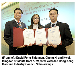 The Hong Kong Maritime Law Scholarship Scheme offers full scholarships to selected students starting from August 2011. These scholarships are available to both local and non-local students undertaking study in the Maritime and Transportation Law stream of the LLM programme at CityU. They can be used to cover the full tuition fee at CityU or as partial scholarships for undertaking dual degrees at Swansea University and CityU. The scholarships are granted on condition that the recipients agree to engage in full-time employment in a maritime-related field in Hong Kong for a period of not less than 12 consecutive calendar months on completion of their degree.
