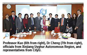 Officials from Xinjiang Uyghur Autonomous Region visiting CityU had lunch with Professor Way Kuo, CityU President, Dr Cheng and scholarship recipients. They also toured facilities on campus to understand more about CityU’s latest development and students’ study life.