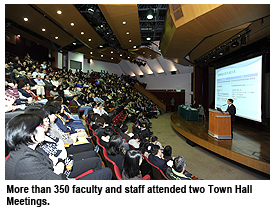 The Town Hall Meetings were moderated by Professor Matthew Lee Kwok-on, Director of Communications and Public Relations. A strong note of appreciation was offered to colleagues in the HRO for their efficient support to the entire exercise.
