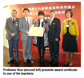 Professor Kuo also urged the students at Pak Kau College, which upholds the Confucian motto that “learning is open to everyone”, to have self-belief. “If you aim high and hit the middle, it’s still nicer than aiming too low and missing the mark,” he said, quoting the Analects of Confucius.At the awards presentation ceremony organised by Highwise Service Foundation of the Taipei Economic and Cultural Office in Hong Kong at Kwang Hwa Information and Culture Center, Professor Kuo emphasised that real learning through practice was more important than getting a degree. “Follow your heart and pursue what interests you, and reap the rewards later in life,” he said. “If we are to improve people’s lives and society as a whole, you need something deeper to aim for, more nourishing, and more meaningful than simply financial security. Teachers serve as the bridge to real scholarship and as mentors for your success.”