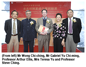 The opening ceremony of the exhibition held today was attended by several important guests, including Mr and Mrs Gabriel Yu Chi-ming, Professor Arthur Ellis, CityU Provost, Professor Steve Ching Hsianghoo, CityU Librarian, Professor Takeshi Hamashita, Dean of School of Asia-Pacific of Sun Yat-Sen University and Professor Chen Jin, Director of Shanghai Jiao Tong University Library.