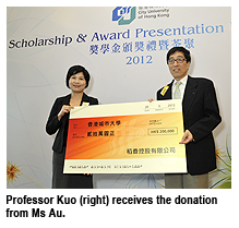 Professor Kuo also encouraged students to pass on the spirit of helping others and contribute back to society.Ms Iva Au, General Manager (Corporate Affairs) of Tao Heung Group, officiated at the cheque presentation ceremony with Professor Kuo. Tao Heung Group’s mission to promote Chinese traditions and nurture talent resonated with the mission of CityU’s Bachelor of Arts (Honours) in Culture and Heritage Management, she said.