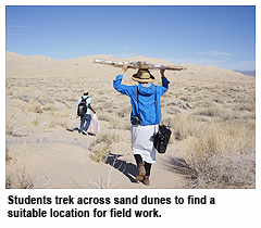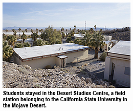 The Mohave Desert, characterised by searing daytime temperatures, freezing night conditions and strong seasonal winds, is not an easy place to work. Some students trekked two hours through the sand and heat to find a suitable location for their field work.