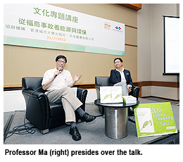 Risk is inherent in most human activity, Professor Kuo said, and there is a price to pay for everything. However, it was important to maintain rational discussions on the sustainable usage of energy and the sustainable development of the economy, and handle issues related to nuclear power and environmental protection carefully. Professor Frederick Ma Si-hang, former Secretary for Commerce and Economic Development in the Hong Kong government, presided over the talk and the Q&A session.
