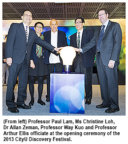 A discovery festival showcasing the strengths of City University of Hong Kong (CityU) in teaching and learning, its unique Discovery-enriched Curriculum (DEC) and academic programmes is being held on the CityU campus from 3 to 7 March.A major event for the University, the 2013 CityU Discovery Festival allows visitors and participants to learn about the unique features of CityU and to experience a taste of its vibrant University life through a variety of activities. Highlights of the festival include a lecture on discovery and innovation by Dr Allan Zeman, Chairman of the Ocean Park Corporation and an honorary doctor of CityU; displays of students’ achievements along with mini-fairs on teaching and learning; a fair introducing majors, minors and Gateway Education (GE) courses on offer to students; a walk through various landmark buildings at CityU; talks, performances and much more.