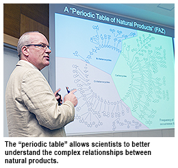 Another important part of the talk focused on the “Periodic Table” of natural products, the first structural classification of natural products, helping scientists to “navigate the chemical space of natural products”, according to the speaker.