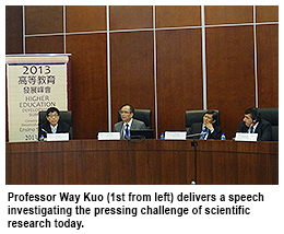 The President of City University of Hong Kong (CityU) delivered a speech investigating the pressing challenge of scientific research nowadays at the 2013 Higher Education Development Summit in Macau on 6 November.