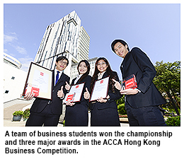 A team of business students from City University of Hong Kong (CityU) won the championship in the degree category in the ACCA Hong Kong Business Competition 2013 with a business plan titled “Crescent Moon: Mobile Dental Clinic Services for Elderly”.They also earned the Best Proposal award and the honour of My Favourite Team, and their team leader, Anika Cheng Tsz-kwan, was chosen as the Best Presenter.