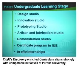 Included in a long list of achievements in this regard at Purdue were the creation of labs and other learning spaces specifically designed to allow students to pursue their own ideas and create new knowledge. Students are also offered graduate courses in entrepreneurship and training in writing grant proposals and business plans, with experienced faculty and alumni acting as mentors.
